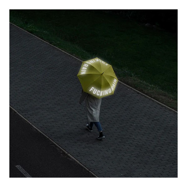 Con este paraguas original con el mensaje "fucking rain" en letras reflectantes no solo mostrarás tu "hate” hacia el mal tiempo, sino que también estarás más seguro en las noches lluviosas, ya que con su efecto reflectante no pasarás desapercibido. Así que... coge tu paraguas, ponte las botas y sal a conquistar cualquier tormenta con estilo y seguridad. ¡Nada podrá apagar tu brillo bajo la lluvia ☔!