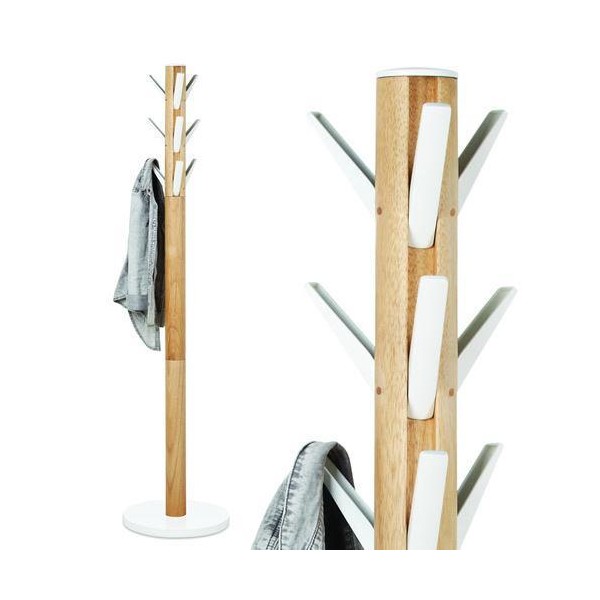 Perchero de metal. Altura 177 cm. Diámetro 28 cm. Tubo redondo de 25mm con acabado en negroTubo madera de caucho de 25+13mm en color natural