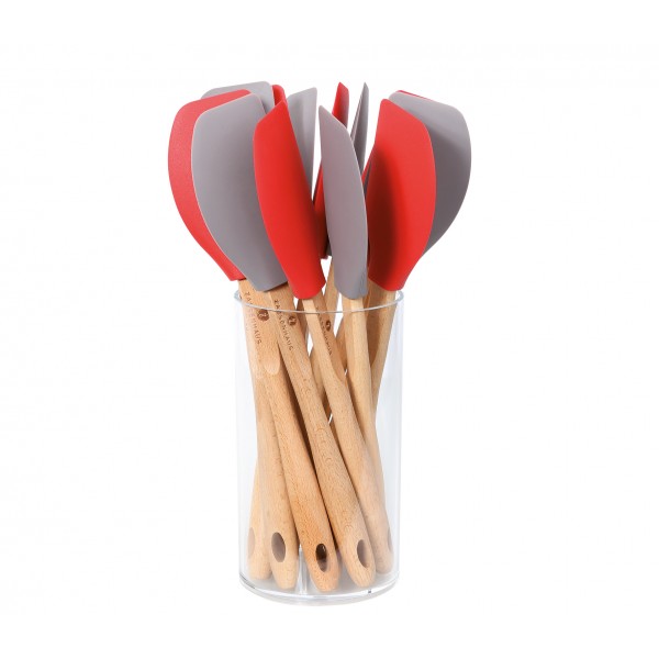 Fabricado en madera de haya de una sola pieza Mango mas ancho para un perfecto agarre Perfecto para cacerolas y ollas con teflón Acabado con un barnizado de aceite natural Medidas: Grande: 31,5 x 6,6 x 3 cm Mediana: 27,5 x 5,4 x 2,5 cm Pequeña: 20,6 x 4,2 x 2,2 cm