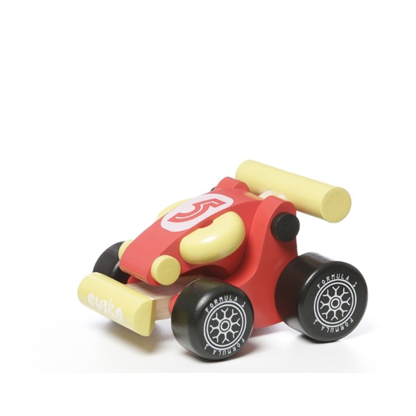 El coche de carreras es un divertido juguete para bebés en forma de un coche de carreras, fabricado en madera natural.