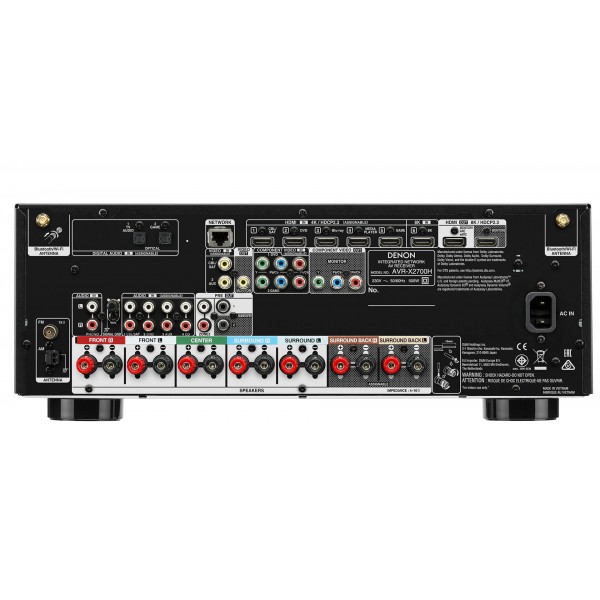 Actualiza tu cine en casa con el AVR-X2700H de Denon. Con 150 vatios por canal, este receptor AV Denon de alto rendimiento proporciona una experiencia de sonido 3D verdaderamente inmersiva con Dolby Atmos o DTS:X. Aunque no dispongas de altavoces de techo específicos, con las tecnologías Dolby Atmos Height Virtualization Technology y DTS Virtual:X disfrutarás más que nunca de tus noches de cine. Además, el AVR-X2700H es compatible con las nuevas tecnologías de vídeo HDMI, ofreciendo paso de señales 8K/60 Hz y 4K/120Hz**, Dolby Vision, HDR10, HDR10+, Dynamic HDR y HLG, así como escalado a 8K y soporte para HDCP 2.3 en todas las entradas HDMI (6 entradas/2 salidas).