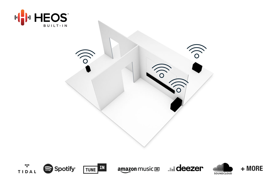HEOS es compatible con Spotify gratuito y premium, Amazon Music HD, TuneIn, Sound Cloud, TIDAL y otros servicios de música.