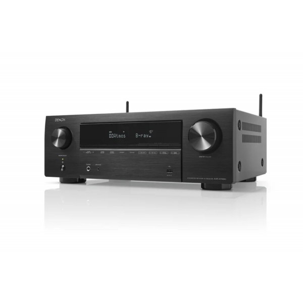 Receptor AV de 7.2 canales 8K con 145 W por canal Denon AVR-X1700H, compatible con los formatos de audio 3D Dolby Atmos®, Dolby Atmos Height Virtualization Technology, DTS:X® y DTS Virtual:X™. Ofrece las últimas especificaciones HDMI, como el paso de señales 8K/60 Hz, paso de señales 4K/120 Hz selectivo, VRR, ALLM, HDR10+ y soporte para eARC