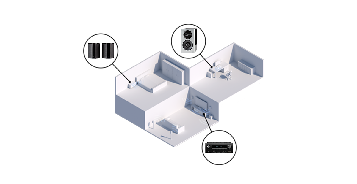El AVR-X1700H Denon permite reproducir un sonido surround de 7.2 canales en una habitación y disfrutar de una fuente o una transmisión de audio diferente en otra. Se puede ver una película en una habitación mientras otro miembro de la familia escucha música sin interrupciones en otra zona. Usa los amplificadores internos para alimentar los altavoces o los preouts de zona.