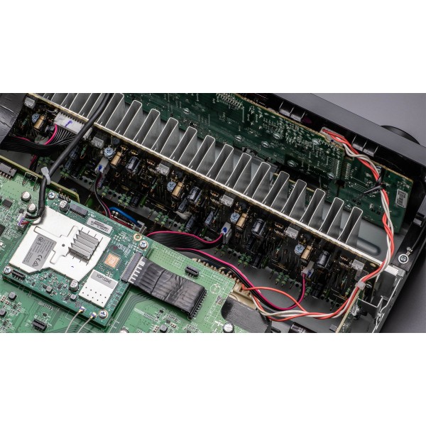 Amplificadores discretos de alta corriente en todos los canales que proporcionan hasta 150 W por canal, una potencia suficiente para alimentar cualquier altavoz