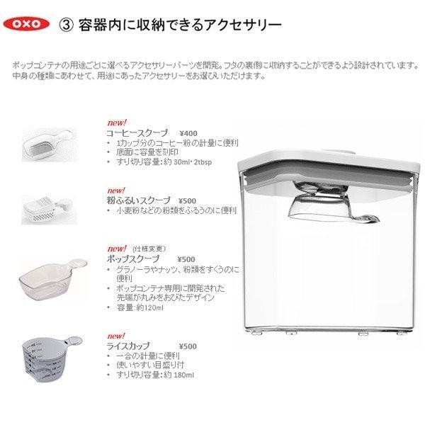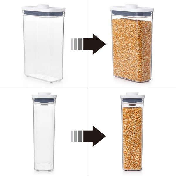 Tres tamaños del famoso contenedor POP de Oxo, ahora en formato estrecho. Ideal para azucar, café, snacks, etc...