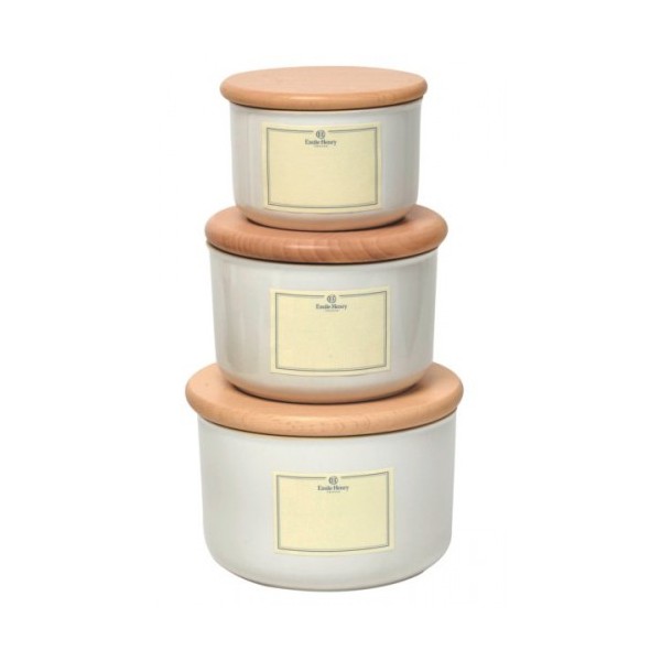 Bote de cerámica de Emile Henry, diseño clásico, color blanco.