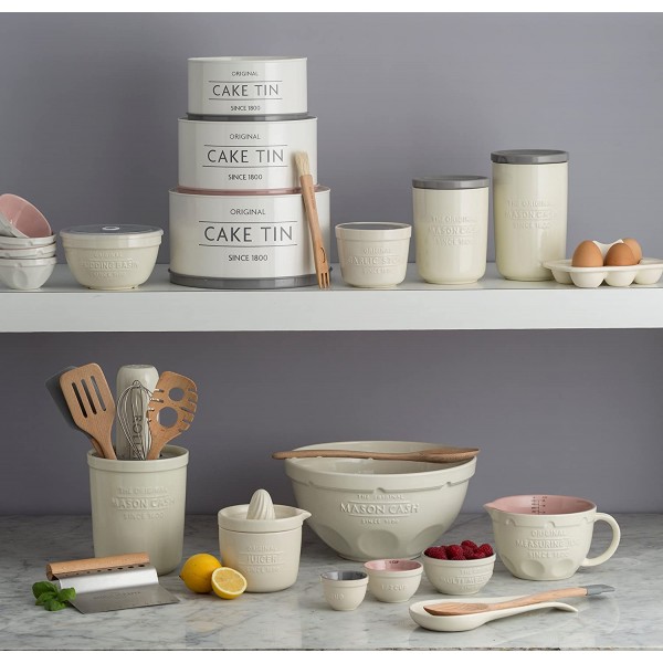 El compartimento central esta diseñado para acoplar el rodillo tamizador de Mason Cash, disponible aquí