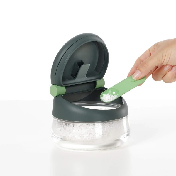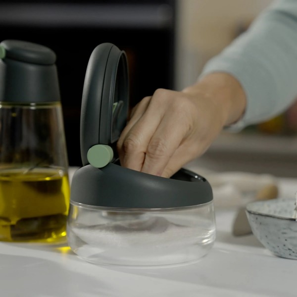 Un moderno salero de cocina para el día a día. ¡Con cierre anti-humedad para una mejor conservación!