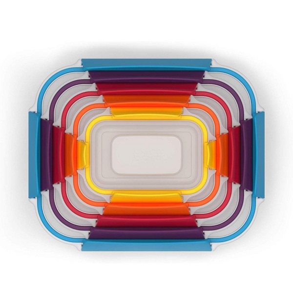 Diseño anidado para ahorra espacio con tapas herméticas y apilables