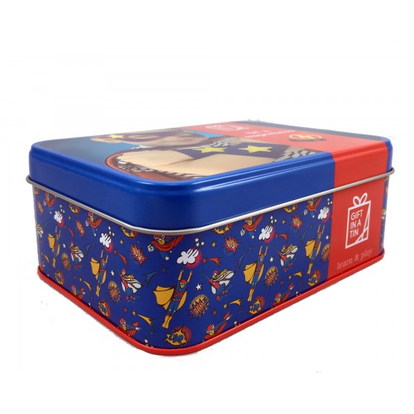 Construye tu puerto, visita al farero, busca cangrejos y gaviotas,... Contenido: Piezas de madera para hacer tu puerto, peces de cartón, alfombrilla de fieltro recreando un puerto e instrucciones, todo en una preciosa lata para guardarlo en poco espacio.