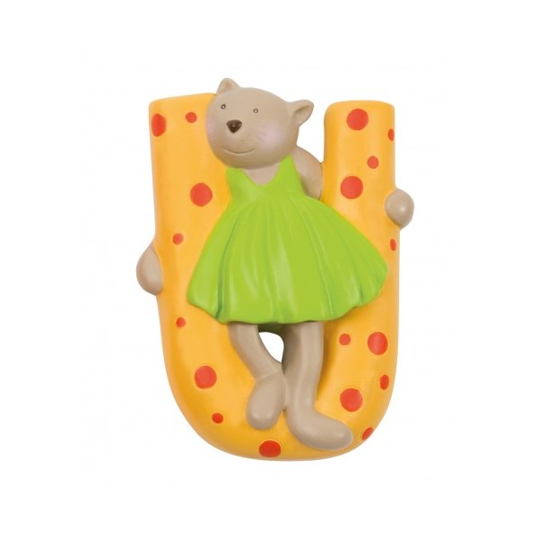 Letra del alfabeto con Nini, la ratita de la gran familia. Adornara cualquier superficie lisa, cama, cuna, puerta, armario. Como inicial o formando el nombre completo. Letra M, color amarillo. Adhesivo 3M. 7 cm de altura aprox.