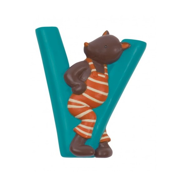 Letra del alfabeto con Clotaire, el oso de la gran familia. Adornara cualquier superficie lisa, cama, cuna, puerta, armario. Como inicial o formando el nombre completo. Letra N, amarilla. Adhesivo 3M. 7 cm. alto aprox.