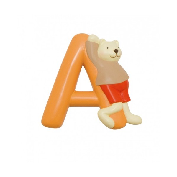 Letra del alfabeto con Clotaire, el oso de la gran familia. Adornara cualquier superficie lisa, cama, cuna, puerta, armario. Como inicial o formando el nombre completo. Letra N, amarilla. Adhesivo 3M. 7 cm. alto aprox.
