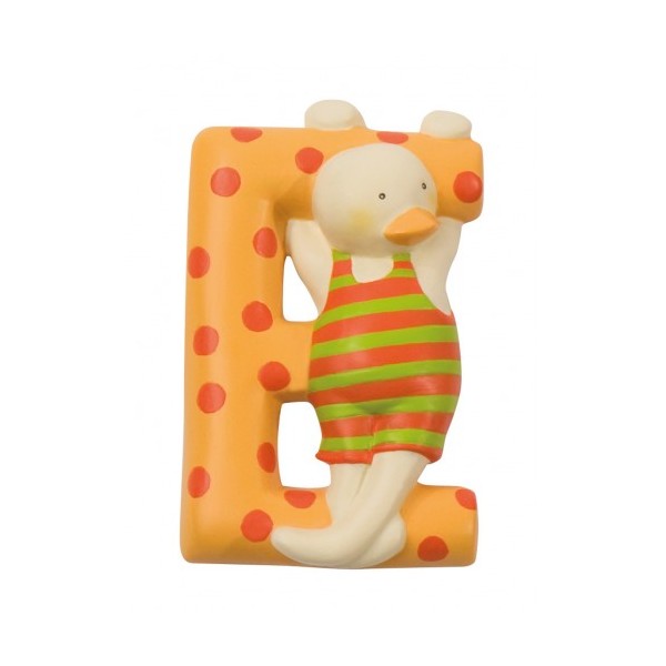 Letra del alfabeto con Jeanne, la oca de la gran familia. Adornara cualquier superficie lisa, cama, cuna, puerta, armario. Como inicial o formando el nombre completo. Letra Q, color naranja.