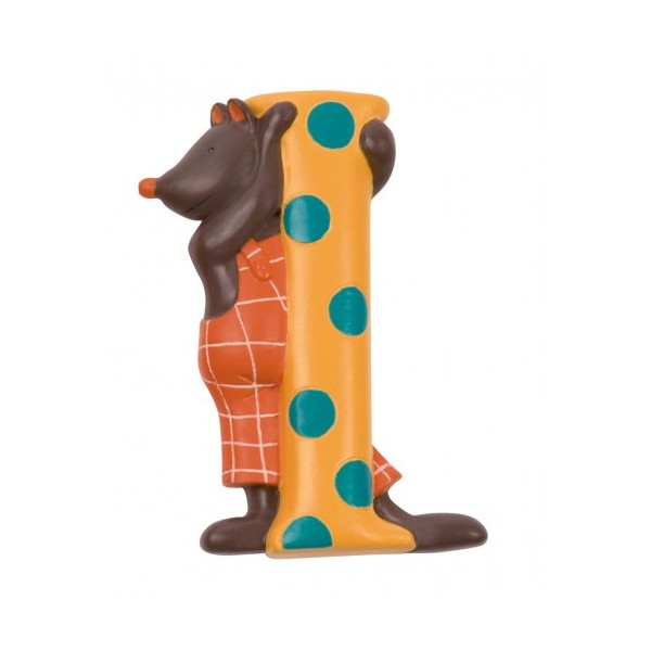 Letra del alfabeto con Clotaire, el oso de la gran familia. Adornara cualquier superficie lisa, cama, cuna, puerta, armario. Como inicial o formando el nombre completo. Letra N, amarilla. Adhesivo 3M. 7 cm. alto aprox.