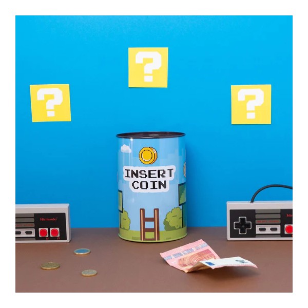 No importa si eres de videojuegos retro o si prefieres los más novedosos, con esta hucha gamer podrás ahorrar para renovar tu set up y comprarte todos tus caprichos. Gracias a su tamaño es ideal para llenarla de billetes y monedas y cuando la abras ¡disfruta y diviértete! Eso si.... para abrirla tendrás que utilizar un abrelatas por lo que es mejor que no saques los ahorros de la hucha hasta que no te entre ni un céntimo más en ella.