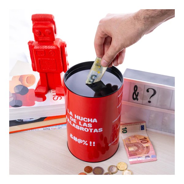 ¡Mete una moneda a la hucha de lata cada vez que digas una palabrota ????! Cuantas más sueltes, más llenarás esta hucha original con mensaje en español, y pasarás de nivel "principiante" a "maestro" en un abrir y cerrar de boca. Pero cuidado, poco a poco irás perdiendo esas malas costumbres y dejarás estas palabras atrás. ????