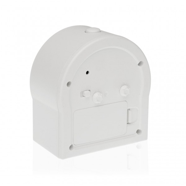 Reloj despertador básico, con mecanismo no silencioso; hace el clásico tic-tacAlarma con sonido de campana.Tamaño:Ø9,5 cm