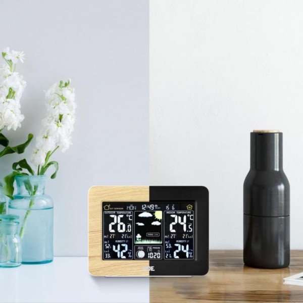 Estación meteorológica con sensor de temperatura exterior inalámbrico y;marco intercambiable