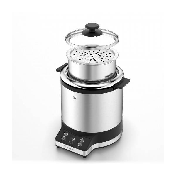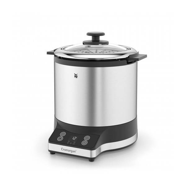 Cafetera automática de WMF para Espresso, cappuccino, latte macchiato y café americano. Base térmica calienta-tazas. Iluminación LED Con salida para vapor, agua caliente o espumar leche. Portafiltros para 1, 2 tazas o almohadillas. Acabado lujoso en Cromargan.