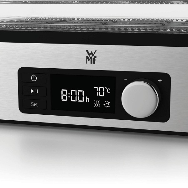Recipiente ahorra espacio para cocinar arroz, quinoa y vegetales. Incluye libro de recetas. Tapa de cristal con pomo aislado. Temporizador Fiambrera incluida para llevar. Acabado elegante en cromargan
