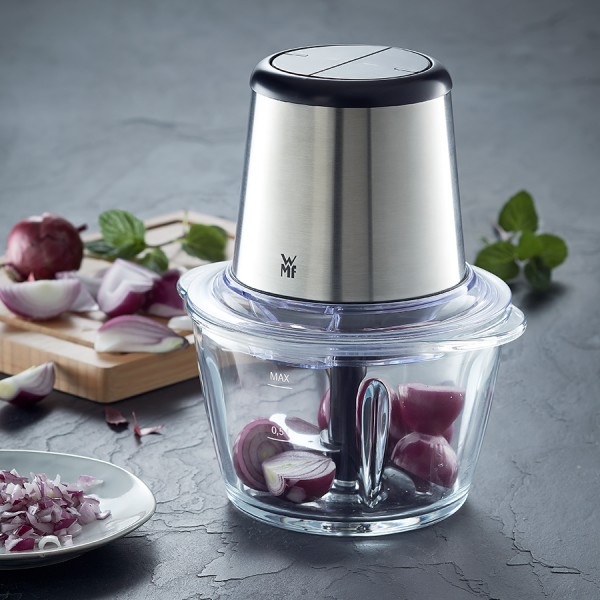 300 Watt, Cromargan, Vaso de Tritán libre de BPA y cuchilla WMF Perfect Cut Práctica tapa para beber Recipiente mezclador de 0,6l con escala y unidad de cuchillas extraible, apto para lavavajillas Desconexión de seguridad. La función de mezcla funciona solamente con el recipiente colocado Cuchilla de 4 aspas con tecnología perfect Cut de WMF