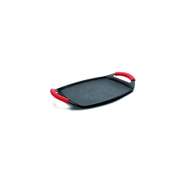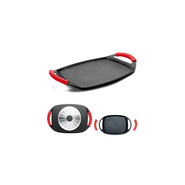 Parrilla de hierro colado esmaltado con asa abatible y extraible fenólica, que no se calienta. Calentar a fuego bajo/medio, engrasar con un pincel de silicona y ya está lista para usar. Ideal para cocina saludable, baja en grasas y sin revestimientos químicos. El interior esmaltado negro, es el más duradero del mercado. Excelente distribución y retención...