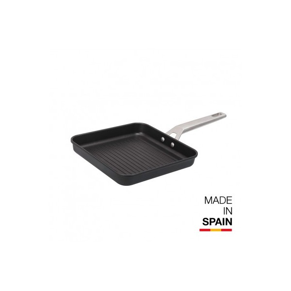 Parrilla de hierro colado esmaltado con asa abatible y extraible fenólica, que no se calienta. Calentar a fuego bajo/medio, engrasar con un pincel de silicona y ya está lista para usar. Ideal para cocina saludable, baja en grasas y sin revestimientos químicos. El interior esmaltado negro, es el más duradero del mercado. Excelente distribución y retención...