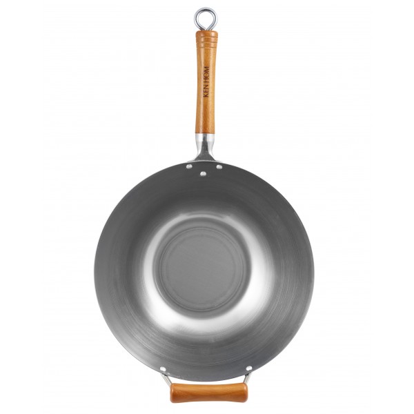 Excelente Wok de hierro con mango y asa de madera Ken Hom.