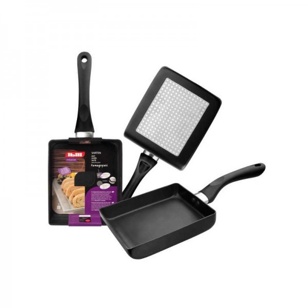 Material : Aluminio con dos capas antiadherentes. Fondo Inox 18%. Mango bakelita.