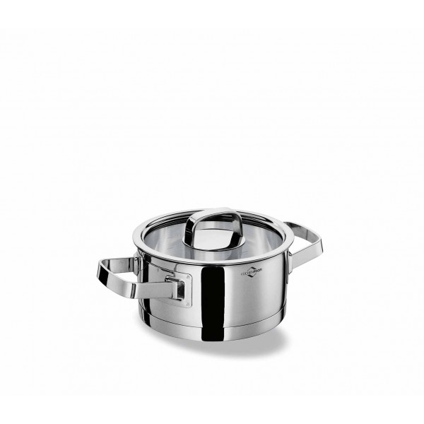 Material: acero inoxidable, vidrio. Fondo multicapa extrafuerte, tapa de cristal de seguridad, asas termoaislantes. Con práctica escala interna.