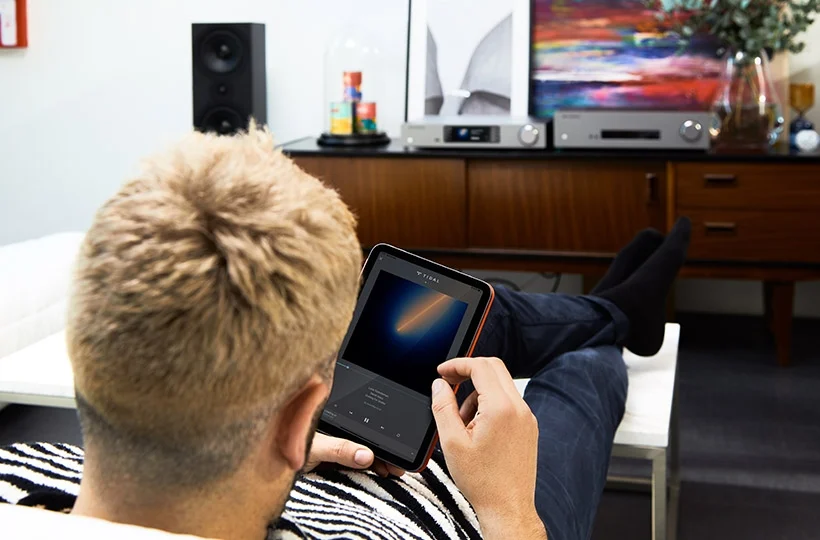 Utilizar el CXN V2 no podría ser más fácil. Nuestra aplicación StreamMagic permite el control intuitivo de todas las fuentes conectadas para crear listas de reproducción, configurar emisoras presintonizadas o buscar álbumes desde la comodidad de tu sofá. Dispone de un mando a distancia y una rueda de selección intuitiva en la parte externa de la unidad. La pantalla a color del CXN V2 confirma las órdenes y muestra la portada del álbum que estés escuchando.