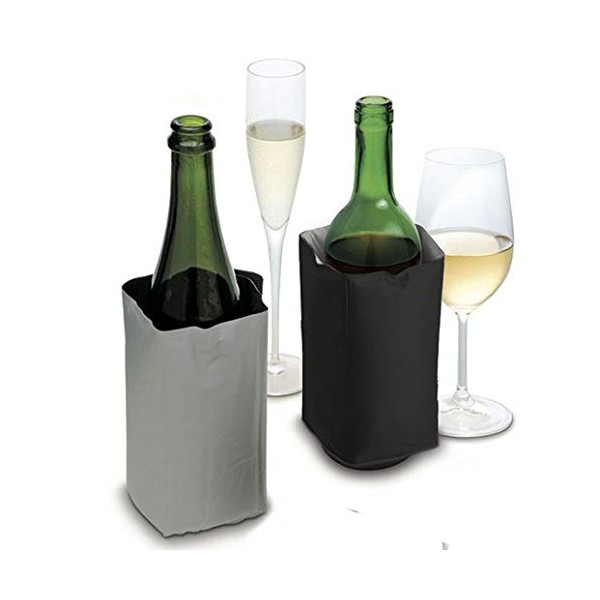 Bolsas de frío para enfríar botellas sobre la mesa o para mantener el frío de la botella salida de la nevera durante toda la comida. Se puede guardar en el congelador para que esté lista cuando sea necesaria. Color Negro