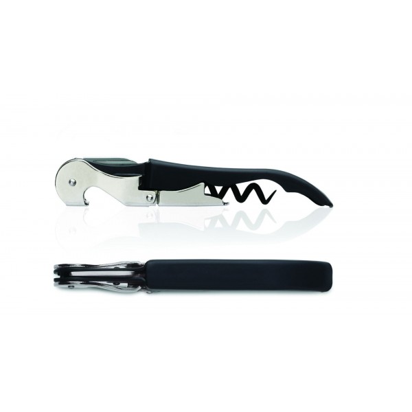 La apertura en cremallera de este sacacorchos es ingeniosa y original. Permite extraer el corcho sin esfuerzo. Indica el nivel de perforación en una escala lateral, ya que no se debe perforar más de 45 mm. para no atravesar el corcho.