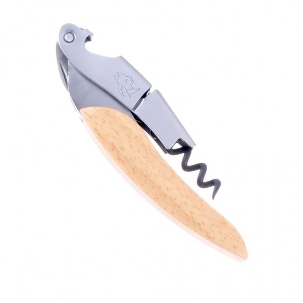 La apertura en cremallera de este sacacorchos es ingeniosa y original. Permite extraer el corcho sin esfuerzo. Indica el nivel de perforación en una escala lateral, ya que no se debe perforar más de 45 mm. para no atravesar el corcho.