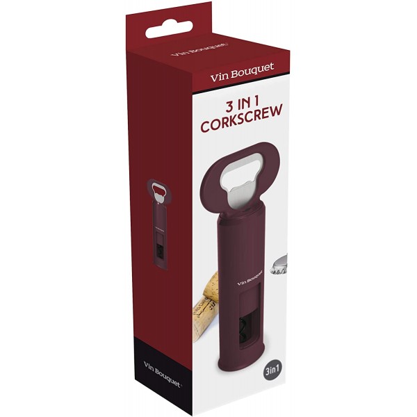 Sacacorchos, saca chapas y descapsulador, todo en uno.