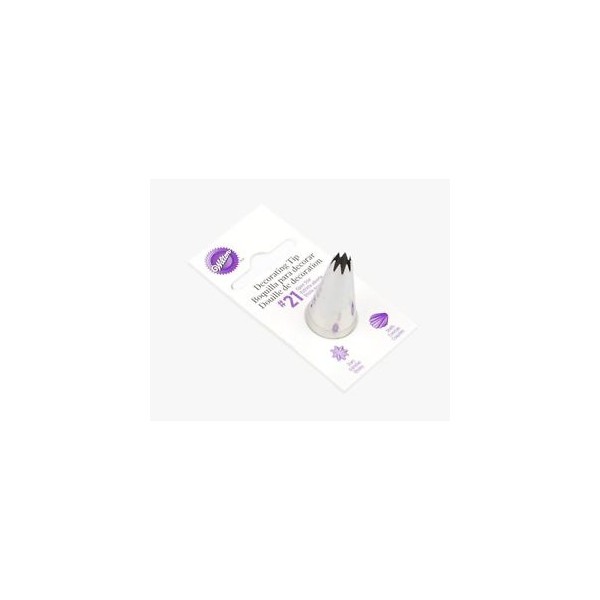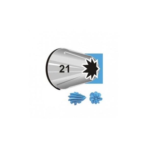 Boquilla de metal grande estrella abierta. Precisa adaptador grande de boquillas. Lavar a mano con abundante agua y dejar secar.