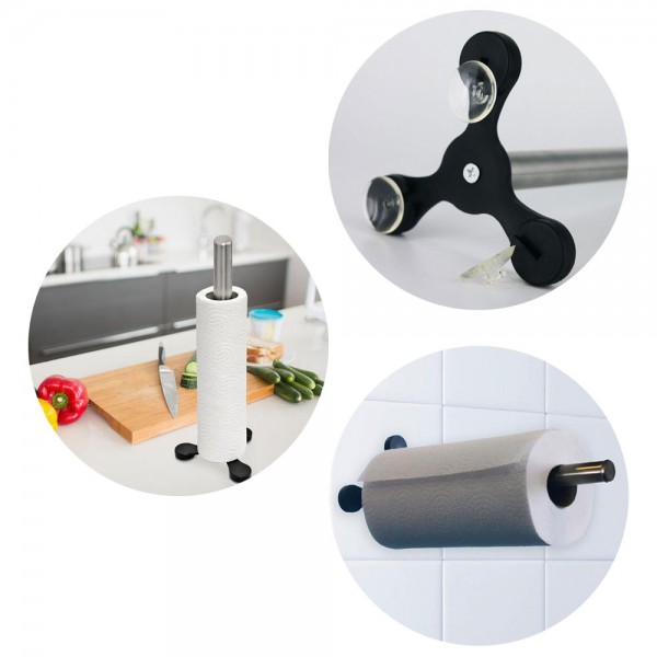 Práctico portarrollos de cocina con ventosas para facilitar su fijación.