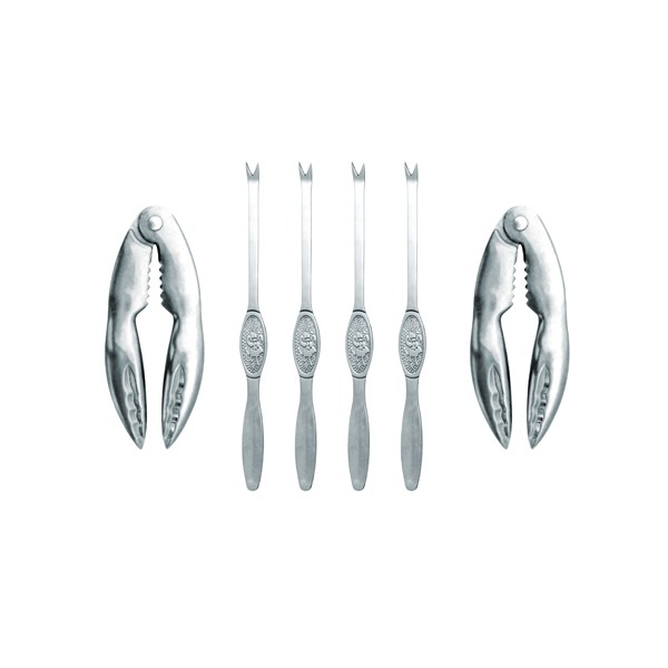 Incluye dos tenazas para marisco y 4 cubiertos.