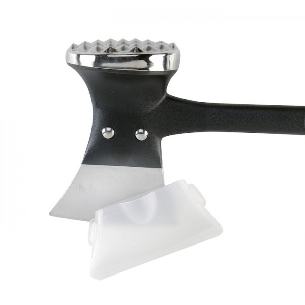Superficie rugosa para ablandar la carne. Superficie plana para aplanar la carne. Mortero para especias. Exprimidor de cítricos.