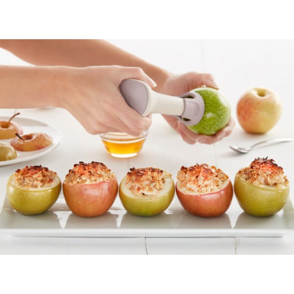 Rápido y fácil de usar. La acción única de giro facilita el triturado del ajo. Triturador de ajo. Prensa varios ajos a la vez. Sacar la piel al ajo antes de usarlo.