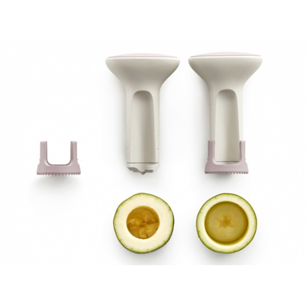 Elimina el hueso del mango y trocea la fruta por la mitad Afiladas y resistentes cuchillas dentadas de acero inoxidable, para cortar bien el mango, aunque esté muy maduro. Mangos cómodos y blandos