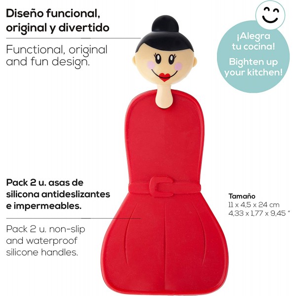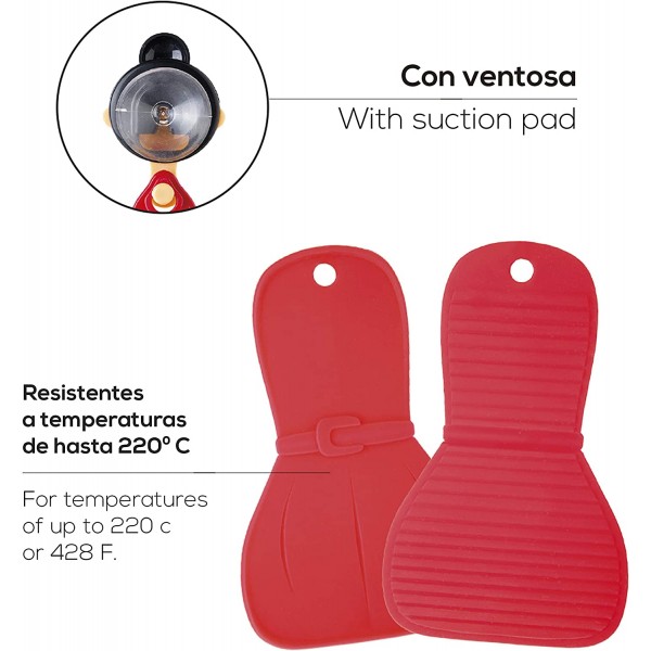 Diseñado en silicona antideslizante para mejorar la destreza y el agarre Silicona resistente al fuego, a las manchas y al calor, fácil de limpiar con un paño húmedo Forro de tela suave para mayor aislamiento y comodidad Se puede colgar de la arandela o mediante el imán que lleva incorporado. Doble función, agarrador para ollas y recipientes calientes y...
