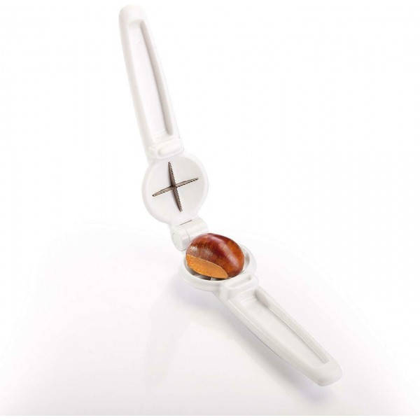 Excelente para cortar la cáscara de las castañas de forma segura y rápida; la cáscara puede pelarse fácilmente después de asarlas o cocinarlas. Filo de corte serrado de acero inoxidable de alta calidad y sólidas asas de plástico resistente. Apto para lavavajillas. Garantía de 3 años.