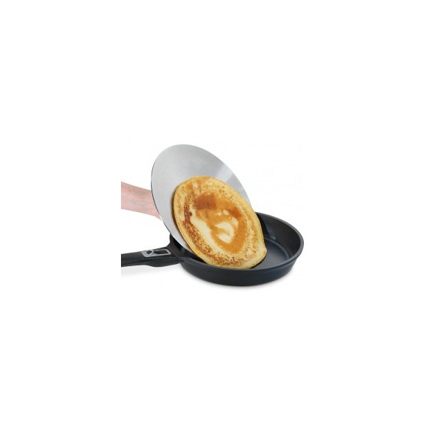Plato especial para voltear tortillas, hecho en Alemania, en acero inoxidable, y pomo de material plástico de alta calidad.