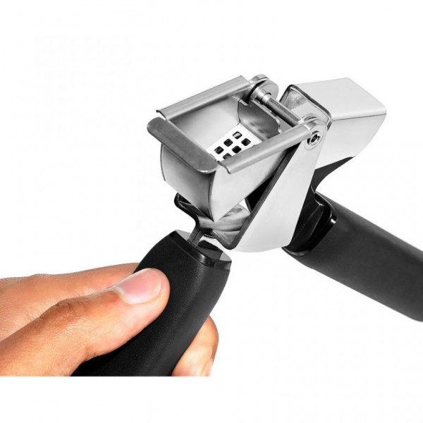 Rápido y fácil de usar. La acción única de giro facilita el triturado del ajo. Triturador de ajo. Prensa varios ajos a la vez. Sacar la piel al ajo antes de usarlo.