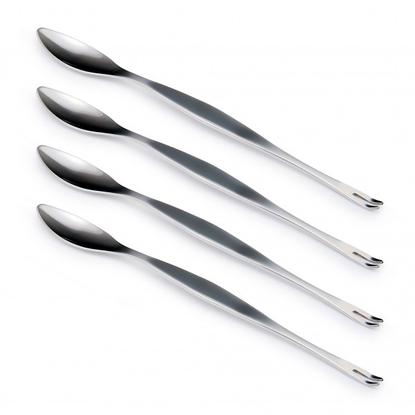 Set de 4 tenedores de marisco de 23 cm. Fabricados en Acero Inoxidable de alta calidad. Tenedor y cuchara para extraer la carne de las zonas más difíciles del marisco.