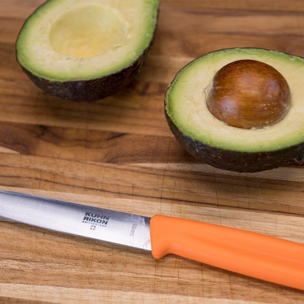 Con una hoja de acero inoxidable de gran precisión. Pequeño saliente para limpiar las partes en mal estado de la patata. Mango antideslizante muy cómodo y ergonómico.