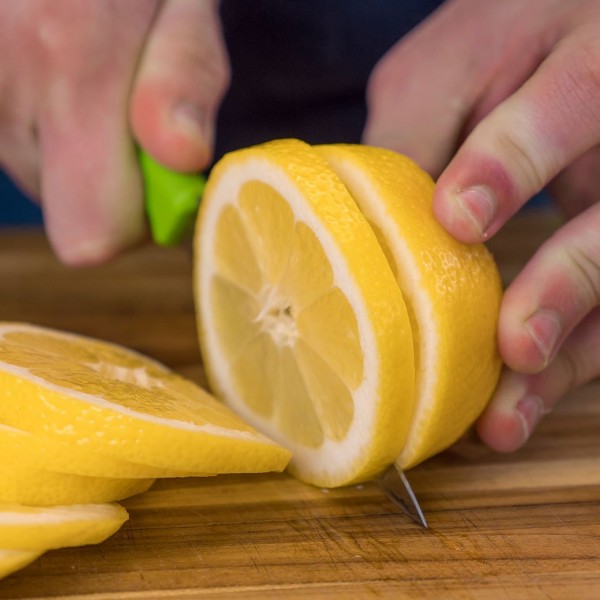 Con una hoja de acero inoxidable de gran precisión. Pequeño saliente para limpiar las partes en mal estado de la patata. Mango antideslizante muy cómodo y ergonómico.